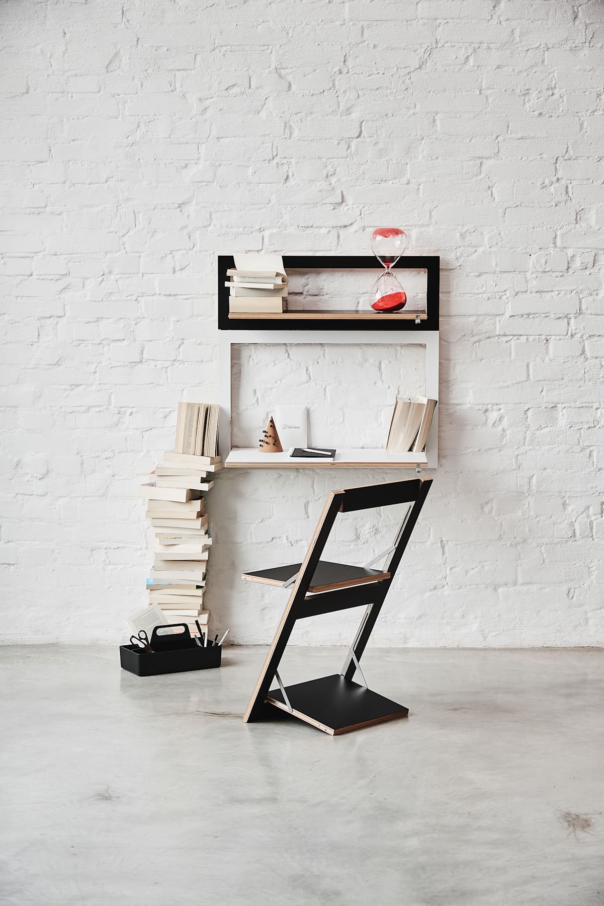 Ambivalence offers a variety of solutions for flexible space design. From the wall-mounted Fläpps secretary to the innovative UpAndDown table – our furniture adapts to your needs. The motto is: Make small spaces big and large spaces huge. Our minimalist design combines aesthetics with functionality, creating individual and space-saving living and working areas.