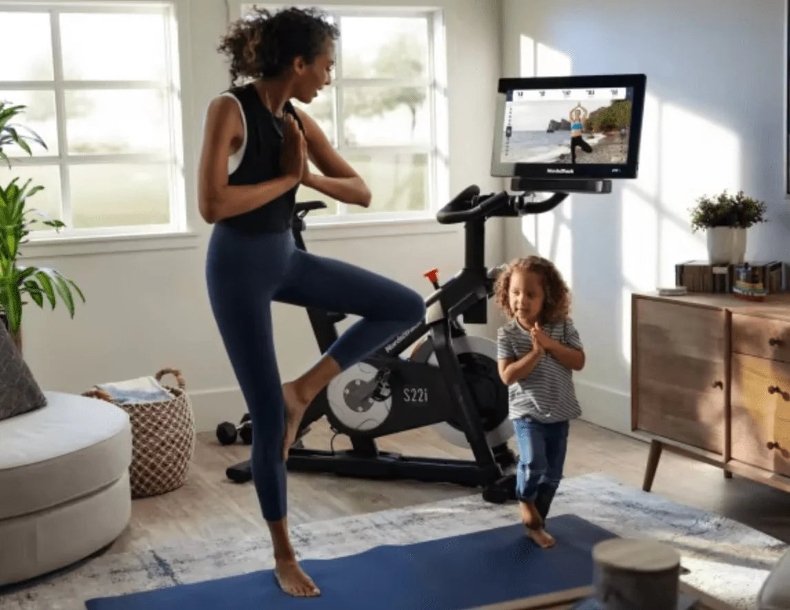 Consider your fitness goals, available space, and budget. Our fitness bikes come in various designs, from classic stationary bikes to modern Peloton alternatives. Look for features such as an adjustable seat and handlebars, a quiet braking system, and compatible apps for an effective and enjoyable workout.