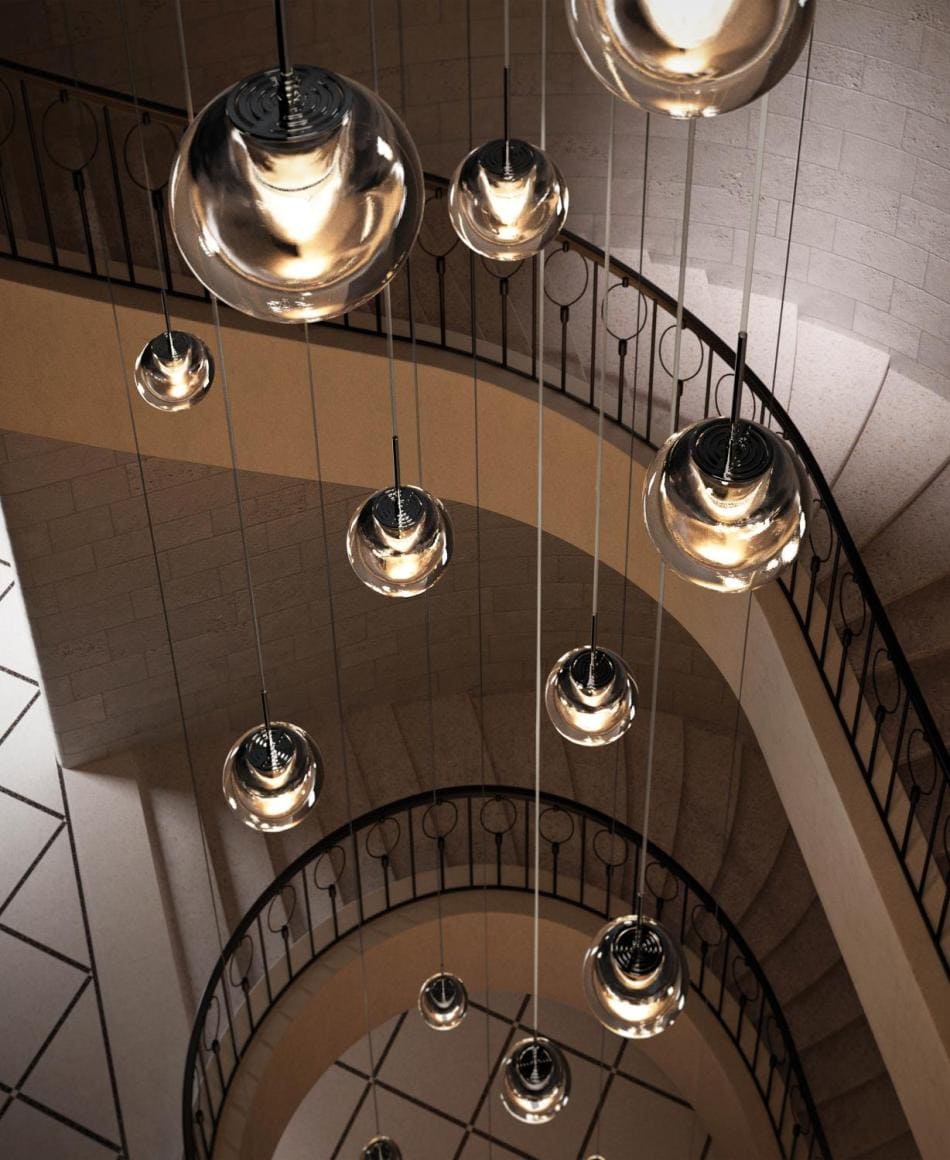 Kundalini works with high-quality materials such as polyethylene, metal structure, and mouth-blown opal glass. The lights are both decorative and functional.