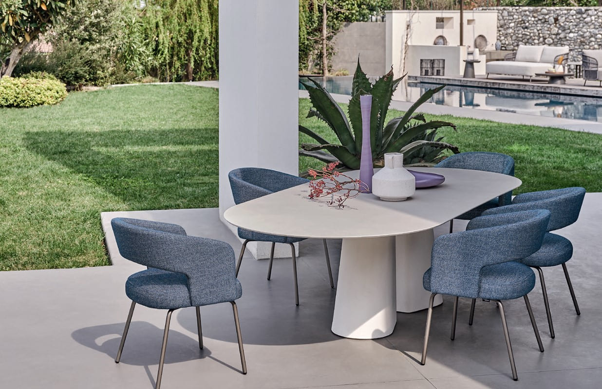 At a round table with a diameter of 120 cm, 4-6 people can usually sit comfortably. Larger models can accommodate up to 8 people. Such dining tables are ideal for larger family gatherings. Discover our wide selection of high-quality outdoor tables online and order your new designer outdoor table today. Transform your garden, balcony, or terrace into a stylish place for gathering with our functional and aesthetically pleasing outdoor tables. Complement your space with matching chairs for a harmonious overall look.