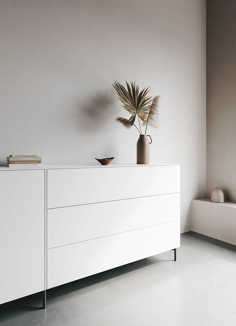 The Connect sideboards open up a world of possibilities and are perfect containers for your storage needs. Thanks to their modular design, they can be perfectly combined with each other, allowing you to create your very own storage solution. Whether you prefer the minimalist-looking variant 01 or the spacious variant 05 - the combination of different modules allows you to create a tailored solution that exactly meets your needs and personal taste. This flexibility makes each dresser a unique piece that reflects your personality.