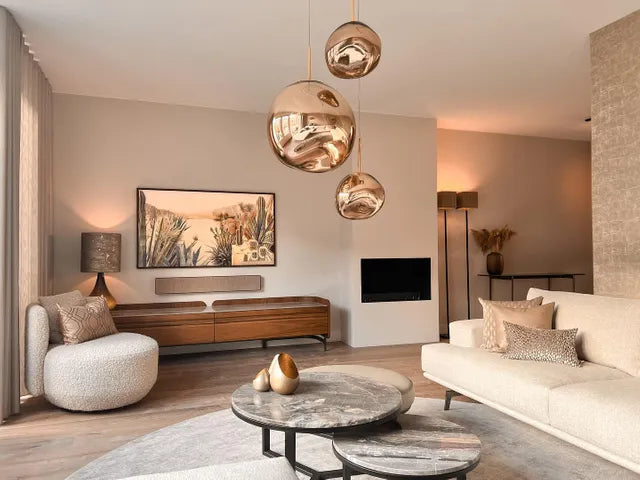 Tom Dixon offers an exquisite selection of Lamps and Lights for your living room. Buy modern Designer pendant lights und ceiling lights that impress with their unique design. The versatile range of Tom Dixon lamps includes, in addition to the characteristic pendant lights, also elegant Table lamps and Floor lamps for harmonious room lighting. The collection by renowned designer Tom Dixon combines innovative British design with exceptional luminosity. Each lamp is crafted from high-quality materials such as copper, brass, and mouth-blown glass, adding stylish accents to any room.