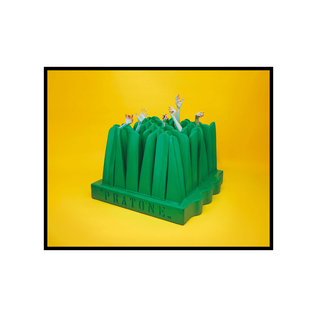 Wie sein Vorgänger symbolisiert Pratone® Forever den Bruch mit Konventionen: ein überdimensioniertes Stück „Gras“ wird zum bequemen Loungemöbel. Der stets leicht variierende Grünton spielt dabei bewusst mit der Idee der Veränderung – und bleibt so lebendig wie das Original aus den 1970ern.