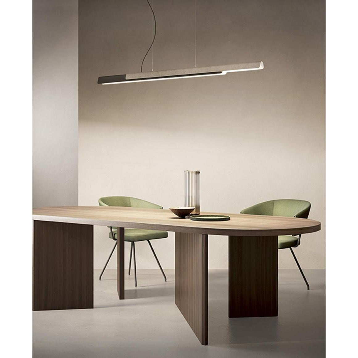 Die Dala Linear Deckenleuchte von Kundalini (KDLN) verbindet umweltbewusstes Design mit innovativer LED-Technologie. Entworfen von Francesca Smiraglia im Jahr 2022, setzt diese Pendelleuchte mit ihrer außergewöhnlichen Form und vielfältigen Farbauswahl beeindruckende Akzente, besonders über Esszimmertischen. Die diffuse Lichtverteilung und Dimmbarkeit über einen externen Phasenabschnittsdimmer sorgen für flexible Beleuchtungsmöglichkeiten in jedem Raum.