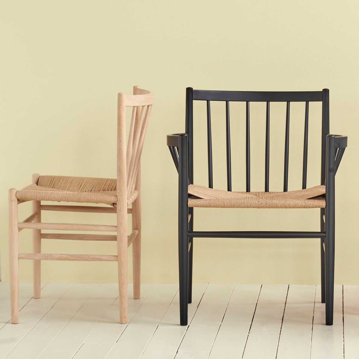 Der J81 Armlehnenstuhl besticht durch seine meisterhafte Verschmelzung von Funktionalität, Material und Form. Die Kombination aus FSC®-zertifizierter europäischer Eiche und handgeflochtenem Papiergarn spiegelt die hohe Wertschätzung natürlicher Materialien wider, während die matt lackierte Oberfläche die schöne Maserung des Holzes zur Geltung bringt. Mit durchdachten Proportionen – 82 cm Höhe, 63,3 cm Breite und einer komfortablen Sitzhöhe von 45 cm – bietet der Stuhl perfekten Sitzkomfort. Die umweltfreundliche Herstellung in Lettland, bestätigt durch das Nordic Swan Ecolabel, und die Lieferung im montierten Zustand unterstreichen die Qualität und Nachhaltigkeit dieses dänischen Designklassikers.
