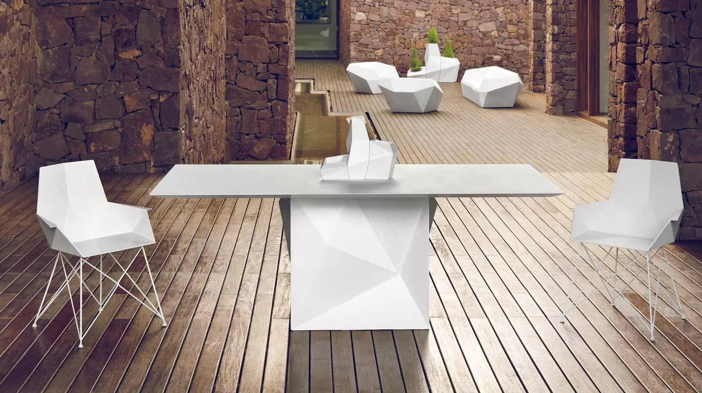 The "Wing" chair in a set of 2 from the outdoor furniture collection by Vondom, designed by A-Cero, is characterized by its dynamic shape that combines straight and curved lines in a harmonious design. This piece is designed for both indoor and outdoor use, offering flexibility as well as stylish design.